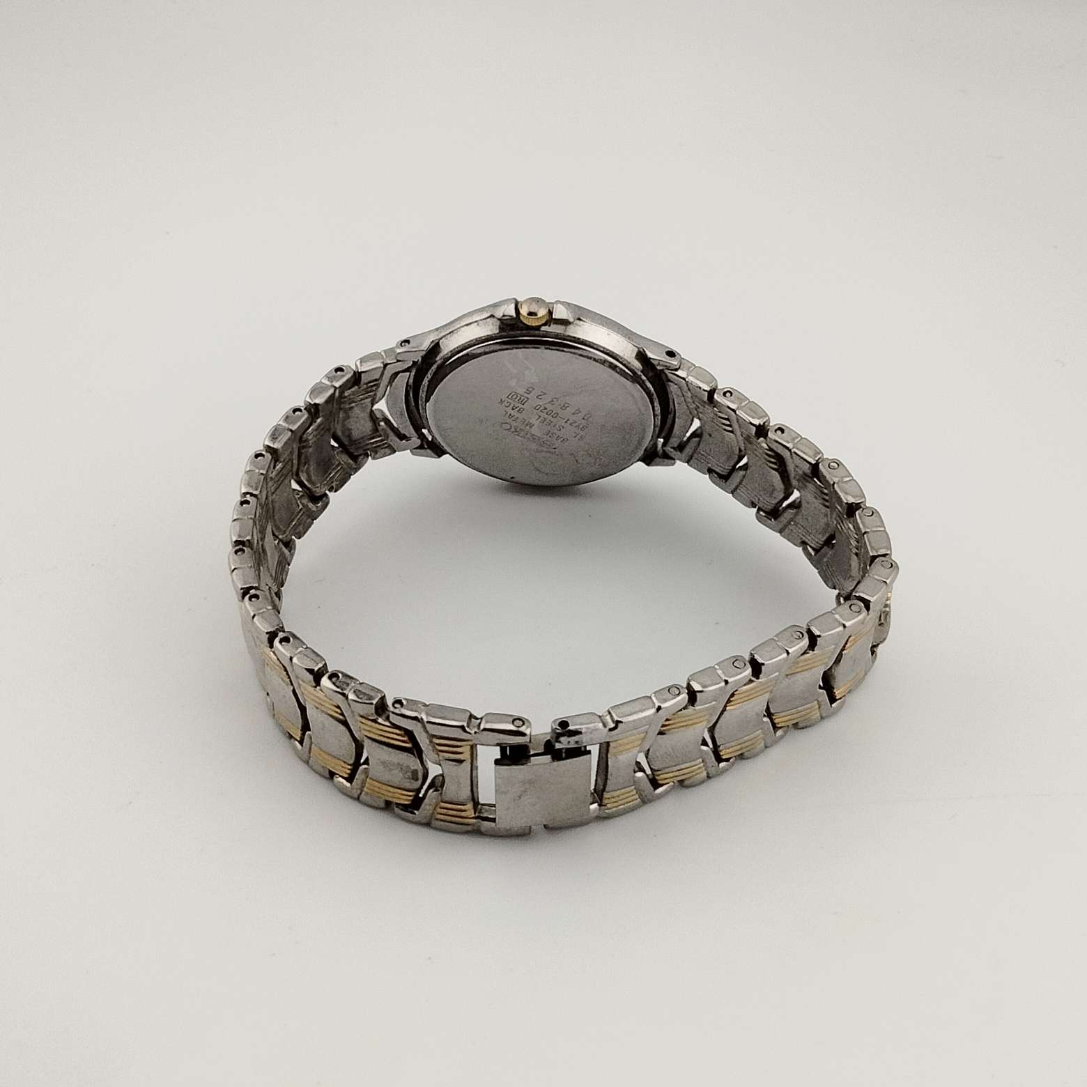 - Silver and gold tone bracelet strap, 7.5" long