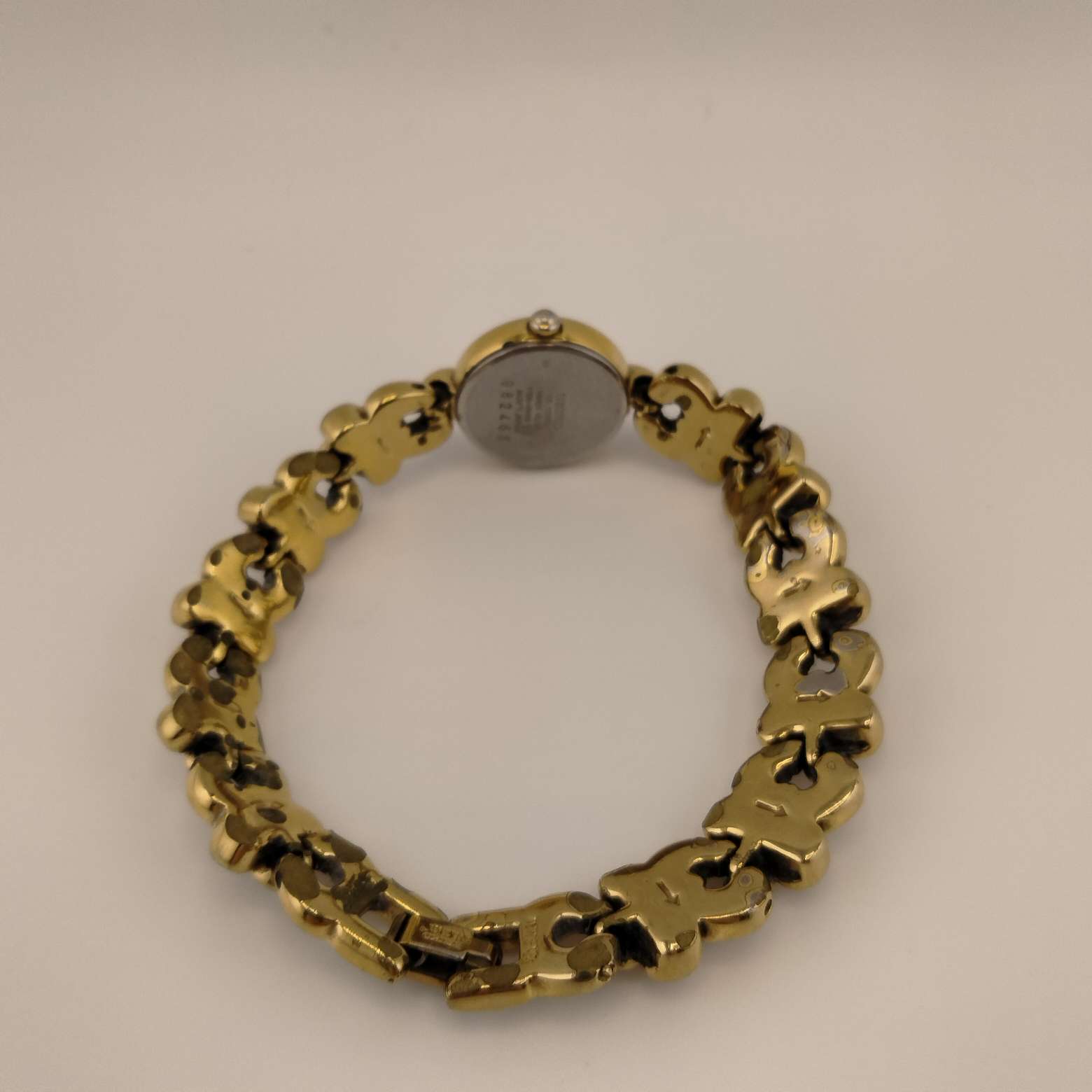 - Gold tone, unique bracelet strap, 7" long