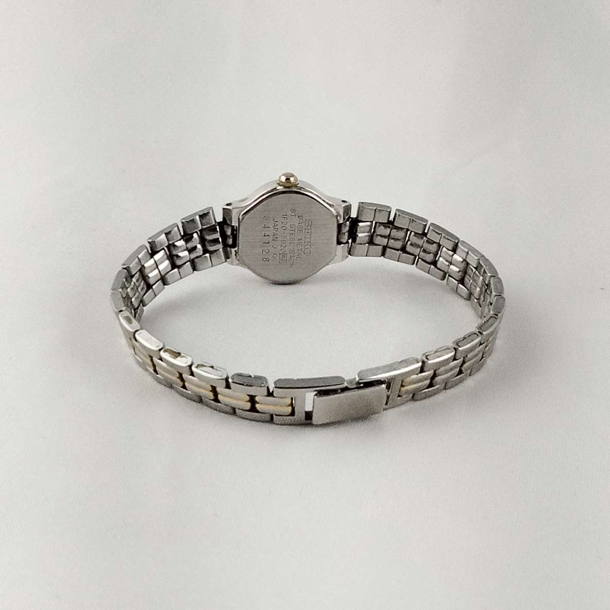 - Dial has a light stain, signs of natural wear throughout, gold tone links on strap have faded in some areas, as seen in photos