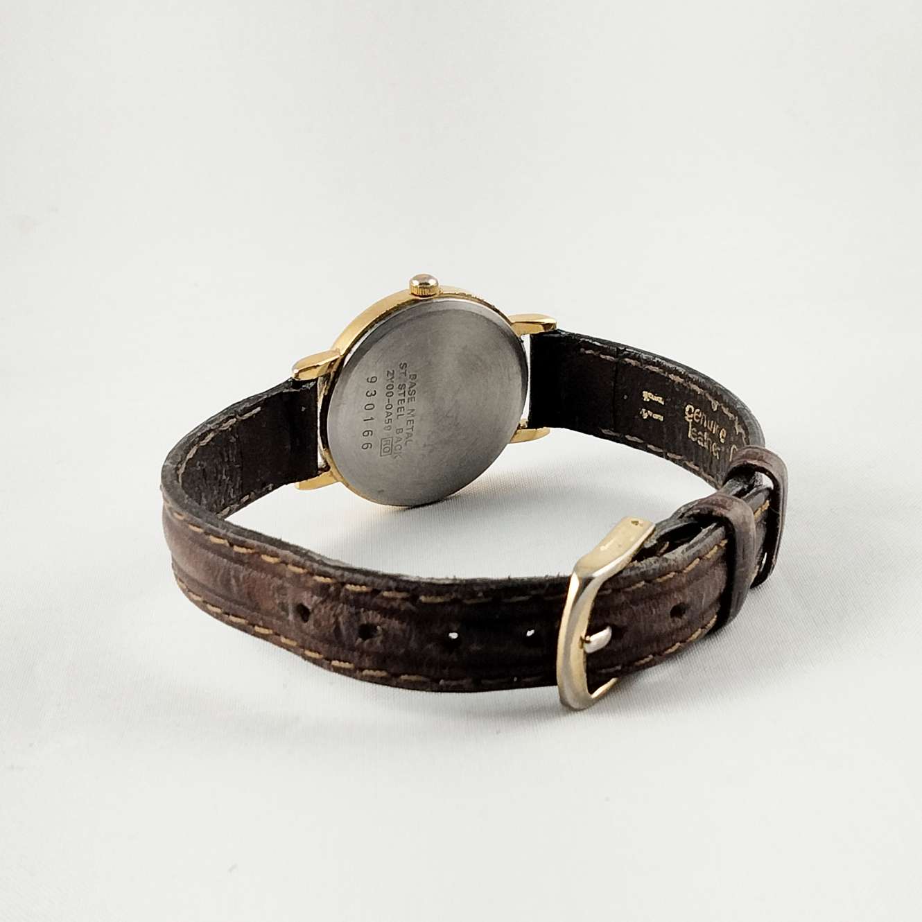 - Dark brown genuine leather strap, adjustable up to 6.5" long