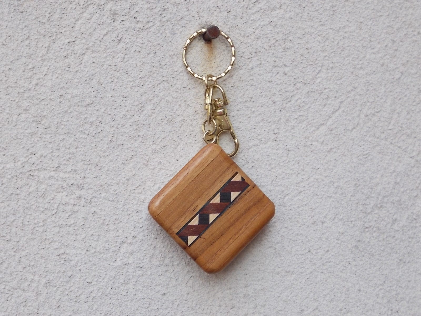 This small wooden case features a geometric inlay design on the front and a tiny little heart inlay on the back. Nice! The clock is quartz and will come with a brand new battery, ready to go. The key chain makes it easy to have with you at all times. Not heavy. (Also not vintage, please note...likely only about 10 years old)