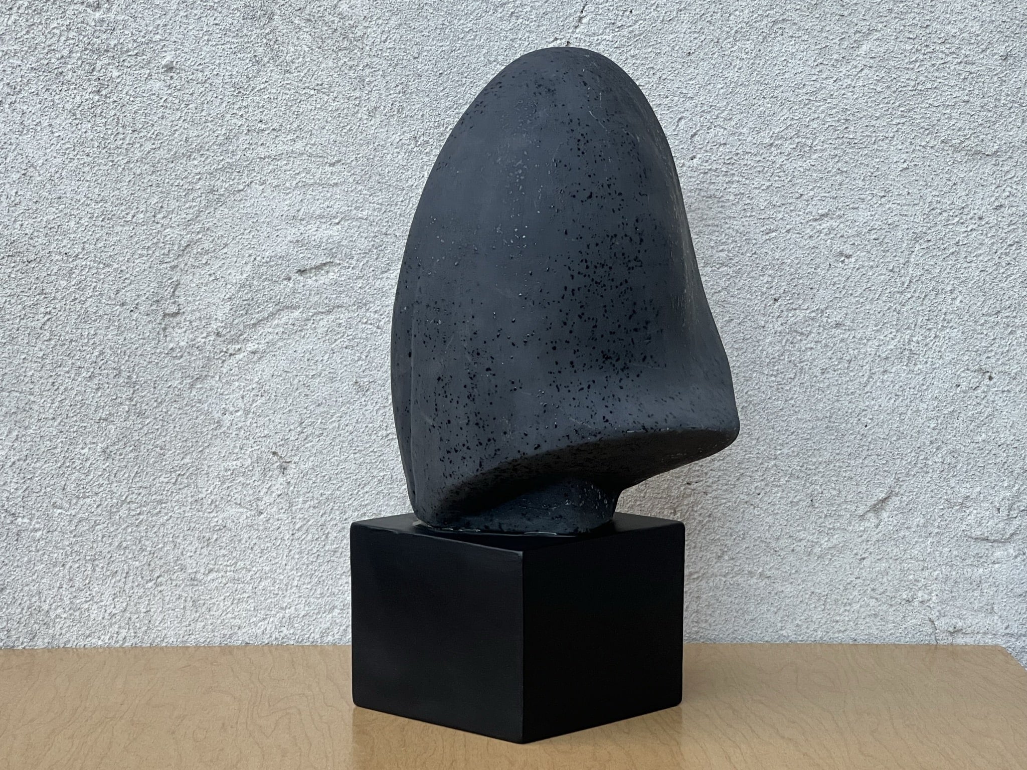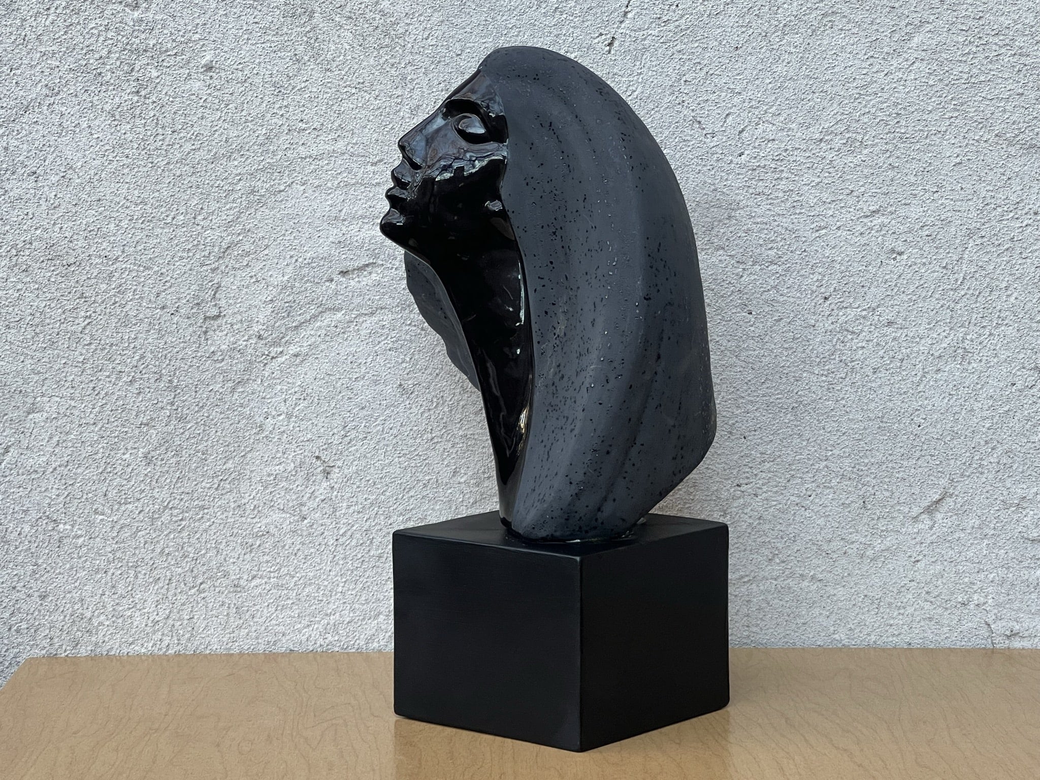 In this piece, creative use of different textures adds to the visual interest of this beautiful piece, the matte surface of the hair contrasting with the shine of the skin so effectively. It is hollow inside so it is not as heavy as it might otherwise be...but it is a substantial piece. Slender from one angle, full from another, interesting from every angle.