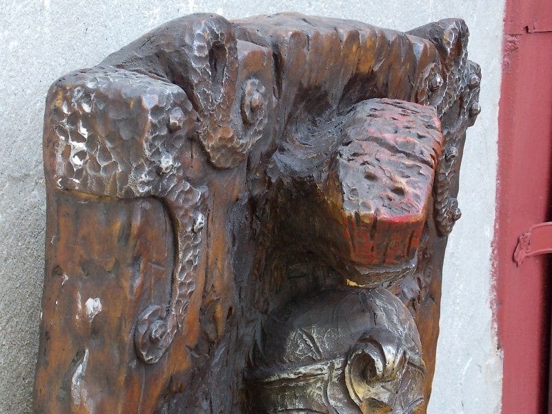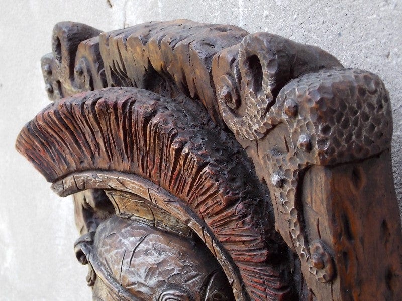 The Universal Statuary Corporation made a lot of shlock. Cutesy, flowery, sappy, grandmother's forgotten display case, hugely boring kind of stuff. And then this. Charles Bronson in 3D! Somebody under their employ must've secretly "gotten it", because this piece just plain exudes cool. The soldier's cool, he's got a cool look, it's a cool representation of him, all cool, cool, cool. And so skillfully executed. The detailing is breathtaking, from his piercing gaze (you definitely get the idea that whatever he's looking at was soon rendered stone-cold dead!) to his chiseled chiseled features, to his warrior headdress. The anonymous artist (one of many employed by USC) who produced this was a master carver equal in prowess to his gladiator subject. And to boot, he looks like my tough-guy dad (yes, people always tell him he looks like Charles Bronson).