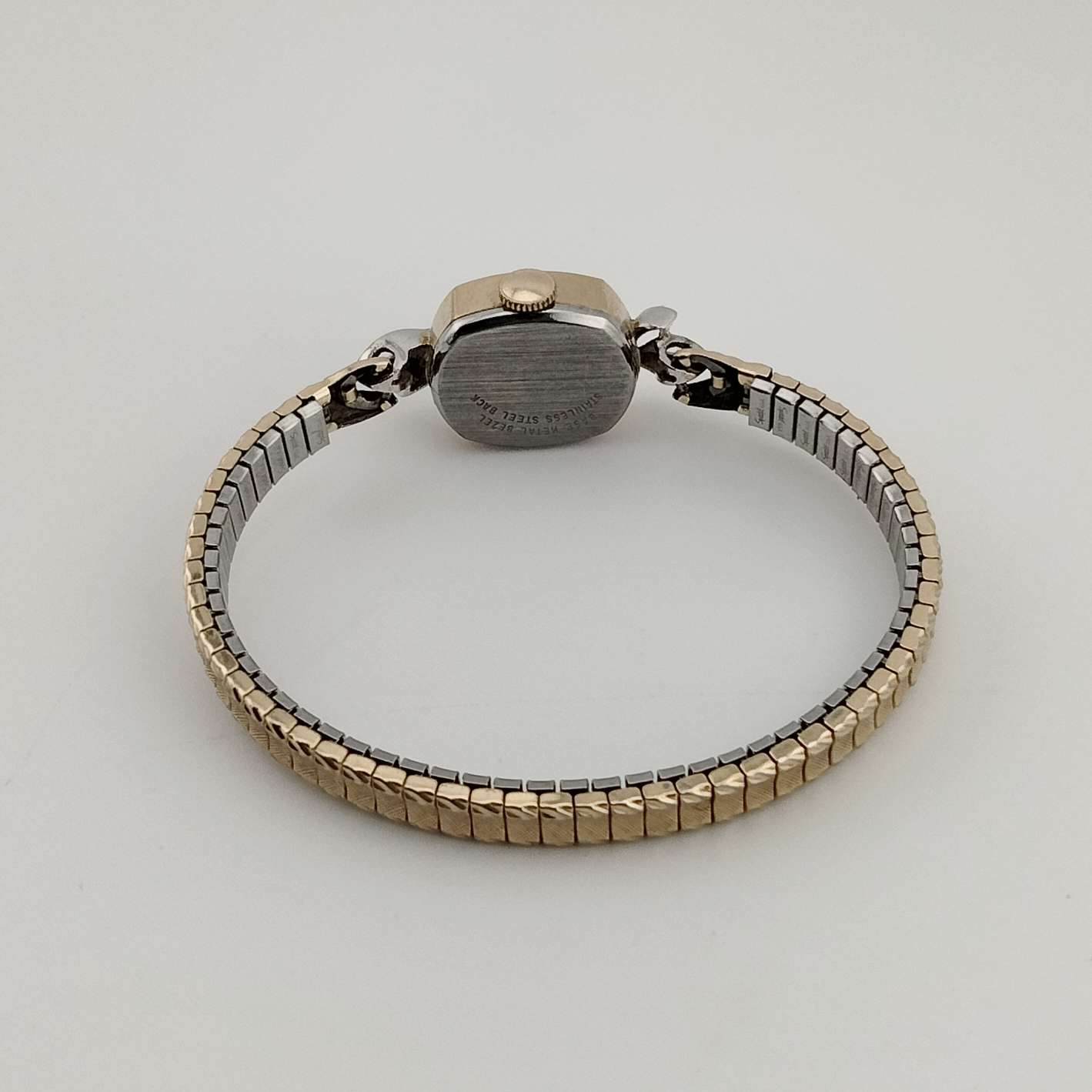 - Gold tone, oval dial with raised dash hour markers, 17 jewels
