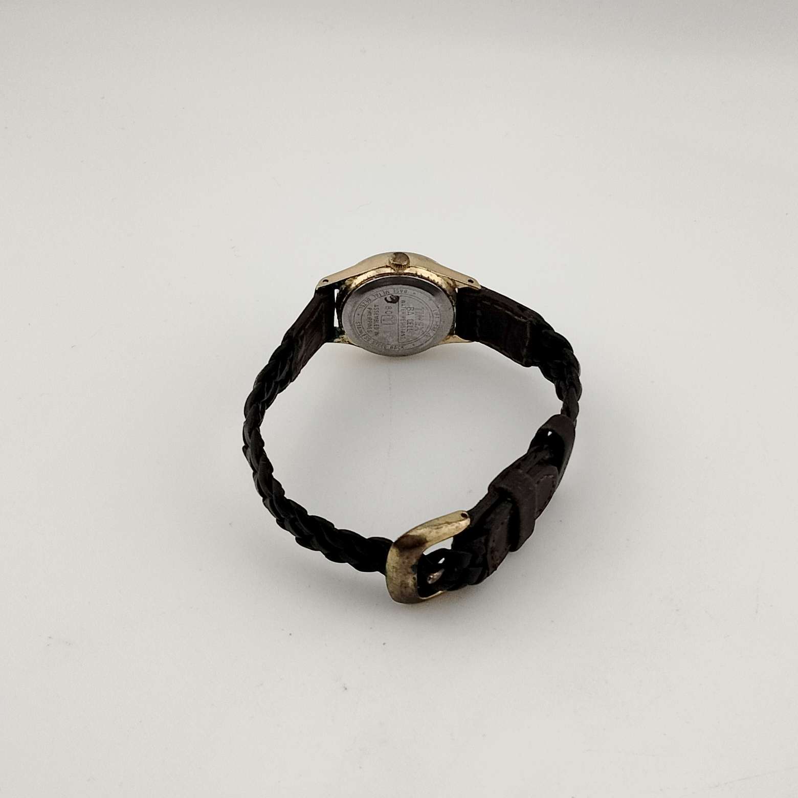 - Adjustable braided brown leather strap, up to 6.5" long
