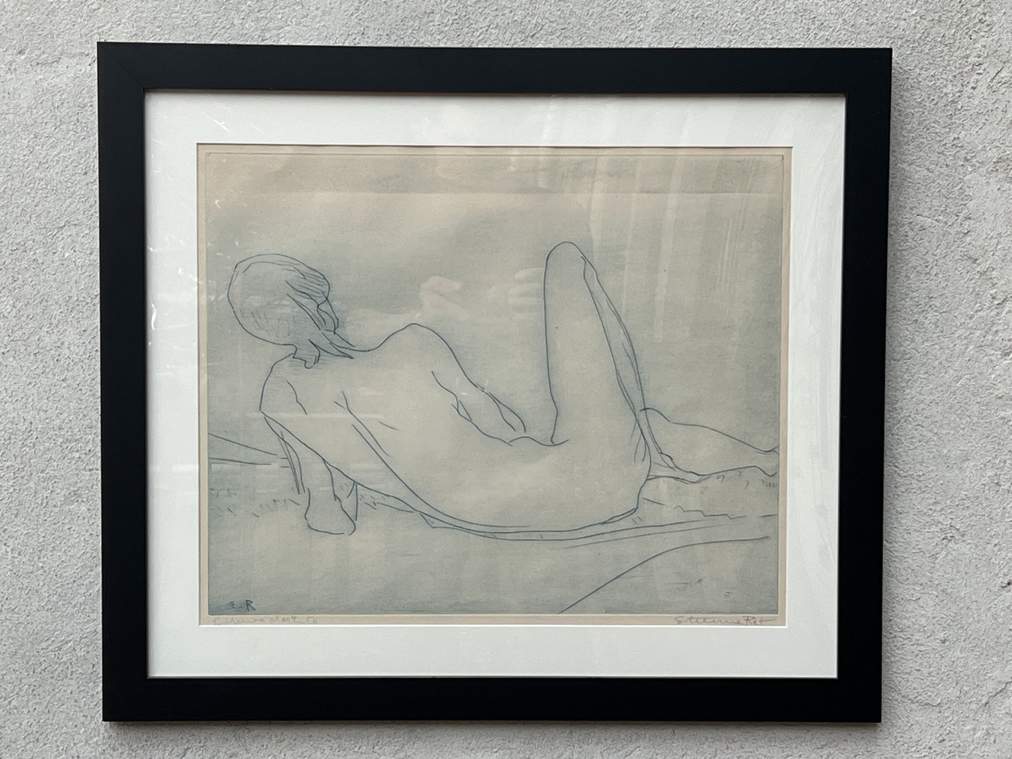 This is a signed "etching", sold at the art gallery Associated American Artists that reigned on 5th Avenue in NYC from 1934-2000. This piece looks to have been for sale in the 1950s, when it was offered for a rich $45. That translates to about $550 today, so we're offering a good deal for this beautiful rendering of a woman (or man?) named Pat. We'll probably never know Pat's significance to Mr. Ret, and that's okay...it's enough that he left us such interesting and beautiful art.